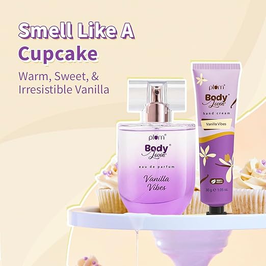 Plum BodyLovin’ Vanilla Vibes On-The-Go Duo | Bestselling Perfume with FREE Hand Cream | Warm & Irresistible Vanilla Fragrance | Long Lasting Perfume | Ultra-Moisturizing Hand Cream | 50ml+30gm